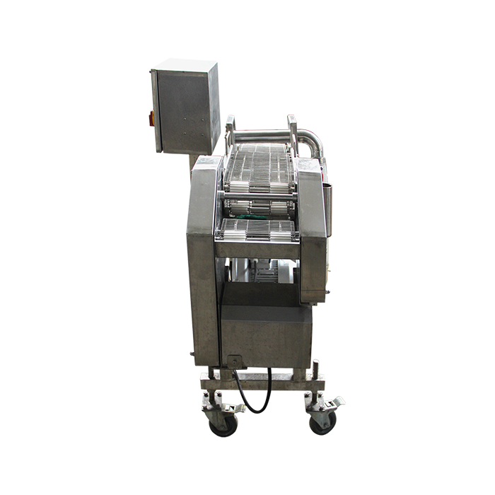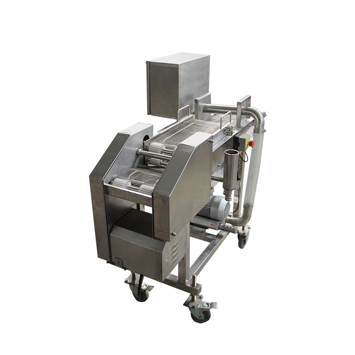 天婦羅裹漿機(jī)自動(dòng)完成產(chǎn)品的上漿過(guò)程,稀漿、濃漿均可。產(chǎn)品經(jīng)上下網(wǎng)帶,在漿液中沾滿漿液,上漿后的產(chǎn)品經(jīng)風(fēng)淋,避免過(guò)多的漿液帶入到下一工序。