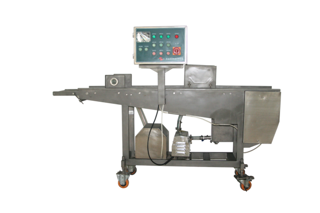 淋漿機(jī)是把產(chǎn)品通過淋漿部分后,下部由下淋漿槽上儲(chǔ)存的漿液均勻粘附上,上部由漿幕將漿液粘附上。通過風(fēng)刀時(shí),多余的漿液被吹落。然后輸入到下一工序。裹漿機(jī)適合于雞肉、牛肉、豬肉、魚、蝦等海鮮產(chǎn)品,肉餅上漿機(jī)適用于上面包屑和上粉前的工藝。雞塊上漿機(jī)可以對(duì)市場(chǎng)上流行的漢堡肉餅、麥樂雞塊、魚香漢堡肉餅、土豆餅、南瓜餅、肉串等產(chǎn)品進(jìn)行上漿處理,是食品工廠理想的上漿設(shè)備。