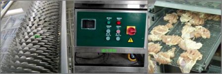 雞肉嫩花機可以與壓延機組合使用,生產牛排或者雞排等其他肉類產品。使用范圍 :厚度在0~20mm之間的無骨肉塊。
