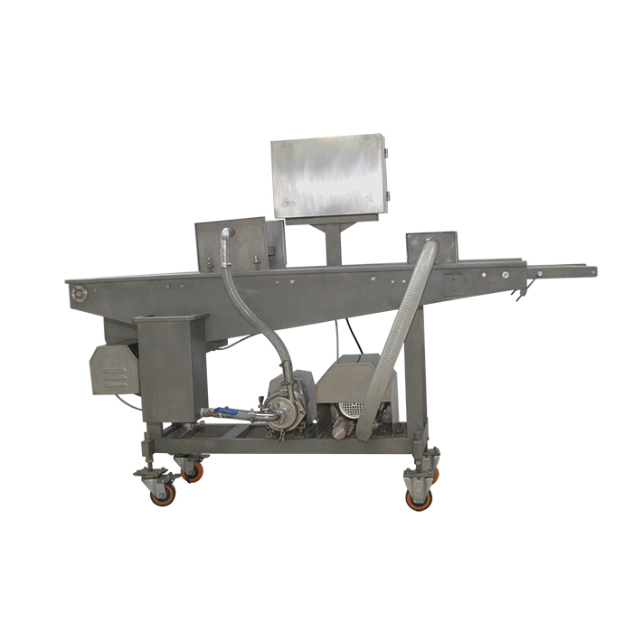 上漿機(jī)是通過漿幕和下部的承漿板把漿液均勻粘附在產(chǎn)品上,通過風(fēng)刀時,多余的漿液被吹掉。然后輸入到下一工序。魚塊掛漿機(jī)適合于雞肉、牛肉、豬肉、魚、蝦等海鮮產(chǎn)品,也適用于上面包屑和上粉前的工藝。雞塊上漿機(jī)可以對市場上流行的雞排,魚排,漢堡肉餅、麥樂雞塊、魚香漢堡肉餅、土豆餅、南瓜餅、肉串等產(chǎn)品進(jìn)行上漿處理,是食品工廠理想的上漿設(shè)備。