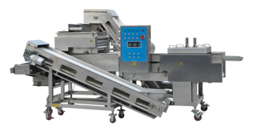 上鮮屑機與上漿機配合使用,上鮮面包糠機可單獨使用。可以對市場上流行的漢堡肉餅、麥樂雞塊、魚香漢堡肉餅、土豆餅、南瓜餅、肉串、魷魚圈等產品進行上鮮面包屑處理,是配送中心、食品工廠理想的上鮮面包屑設備。