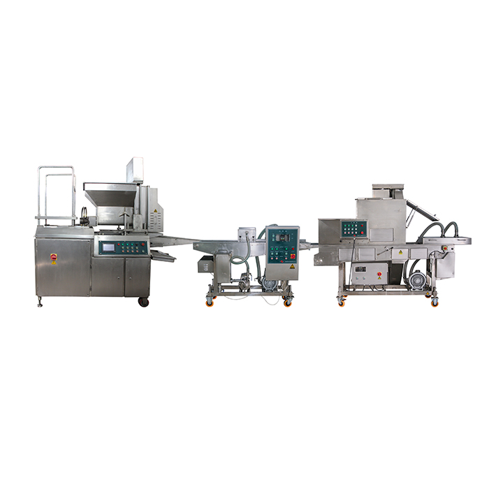 土豆餅生產線把混合好的原料經過成型,上漿,上康,油炸,速凍等工藝做出不同厚度不同規(guī)格的土豆餅。模具可以生產不同形狀的產品(如三角形,橢圓形,卡通雞塊形狀,不規(guī)則形狀)通過模具更換產品。土豆餅生產線適用于肉類、水產、蔬菜、奶酪以及它們混合料。土豆餅生產線的需要配置前處理設備和后處理設備:絞肉,混合,油炸包裝等設備,油炸土豆餅生產線與這些配套設備組成一條完整的快餐調理生產線。