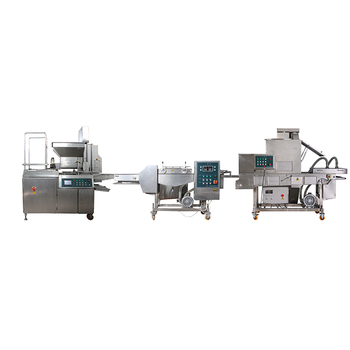 洋蔥圈生產線把混合好的原料經過成型,上濃漿,上康,油炸,速凍等工藝做出不同厚度不同規格的肉餅。模板可以生產不同形狀的產品(如圓形,三角形,橢圓形,卡通雞塊形狀,不規則形狀)的洋蔥圈,通過模板更換產品。洋蔥圈生產線適用于蔬菜、奶酪以及它們混合料。蔬菜洋蔥圈生產線的需要配置前處理設備和后處理設備:切丁,混合,油炸包裝等設備