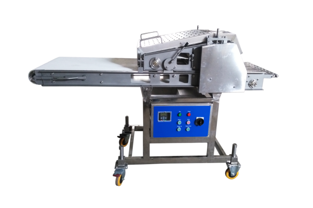 雞肉壓整機適用范圍:該設備適用于厚度小于40mm、無骨的所有肉塊的壓延。