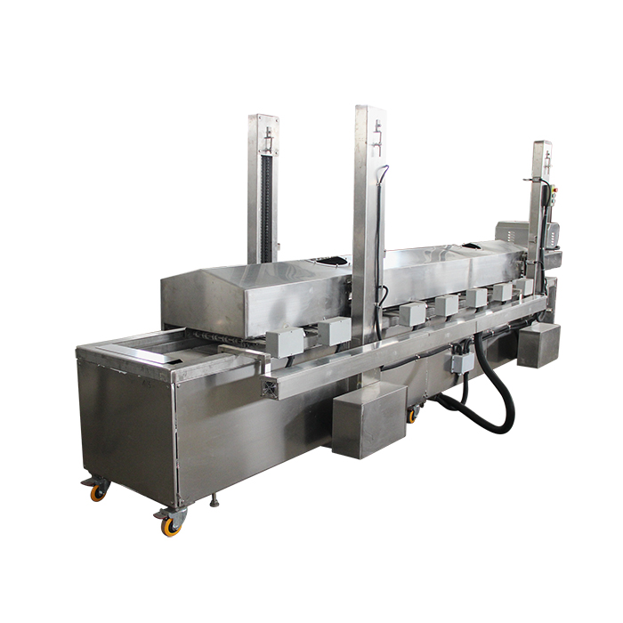 連續(xù)油炸機(jī)該設(shè)備采用電能為能源,是根據(jù)熱力學(xué)原理及針對(duì)食品的各項(xiàng)要求設(shè)計(jì)制造的,可對(duì)不同規(guī)格的制品進(jìn)行油炸。油炸時(shí)間、溫度及刮渣等全部實(shí)現(xiàn)自動(dòng)控制,油炸過(guò)程簡(jiǎn)單、安全。節(jié)省油耗、節(jié)約能源。經(jīng)該機(jī)炸制過(guò)的產(chǎn)品,色澤鮮艷、口感極佳、香味誘人。