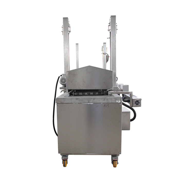 電加熱油炸機(jī)由網(wǎng)帶輸送系統(tǒng)、自動(dòng)刮渣系統(tǒng)、濾油系統(tǒng)、網(wǎng)帶提升系統(tǒng)、油溫自動(dòng)控制系統(tǒng)、電加熱系統(tǒng)等幾部分組成。